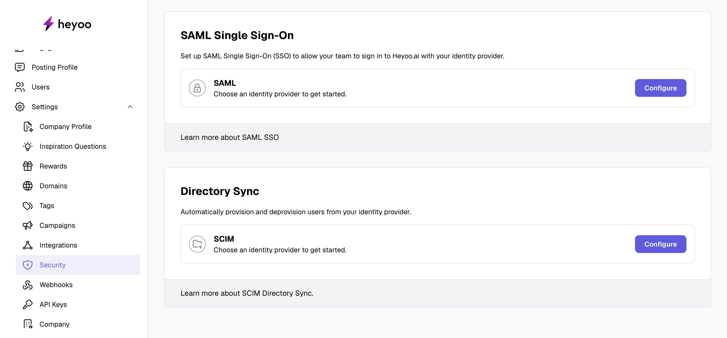 For Heyoo “Professional” users, you can securely manage your team’s access to Heyoo using Azure AD SAML SSO.